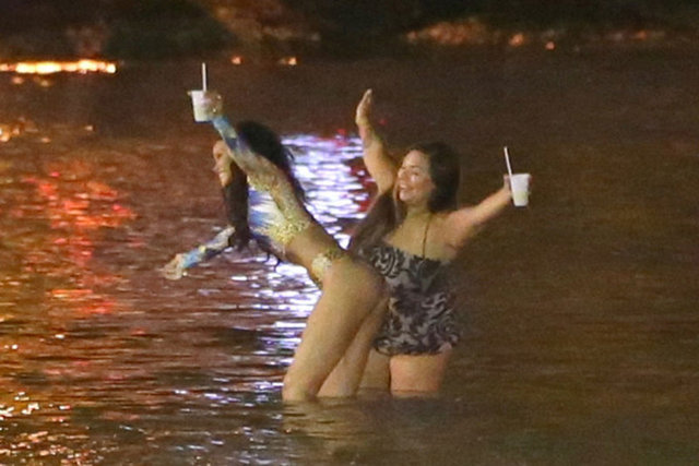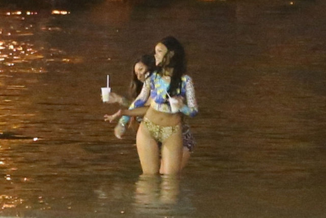 Teknede büyük bir özenle hazırlanan Rihanna, yanına birkaç tane deniz sosisi alarak denize girdi.