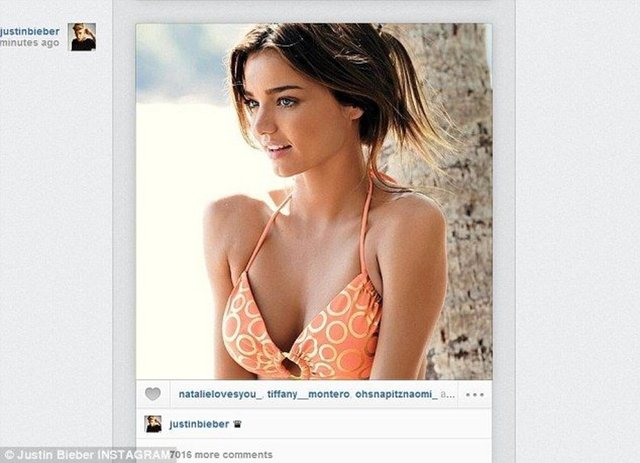 Justin Bieber, bu tartışmanın ardından Bloom'un eski eşi Miranda Kerr'ın bu fotoğrafını Instagram sayfasında paylaştı. Ancak bir süre sonra da sildi.