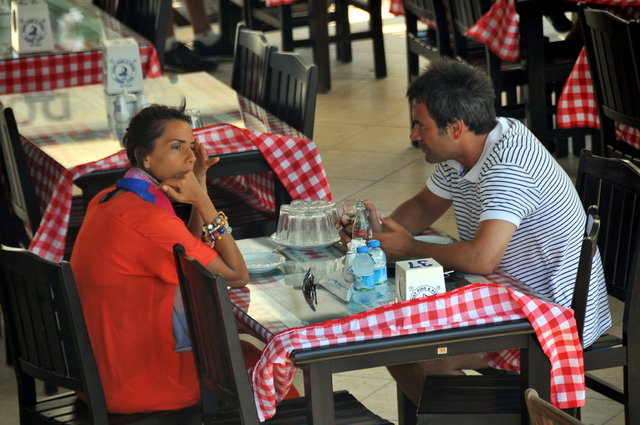Eşi ve kızıyla Yeşilköy’de kahvaltı yapan oyuncu, ardından minibüslerine binerek uzaklaştı.