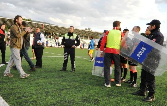 Bodrum'da şampiyonluk maçında çıkan tartışmayı, oyuncu Nejat İşler yatıştırdı