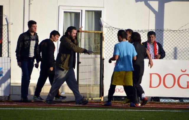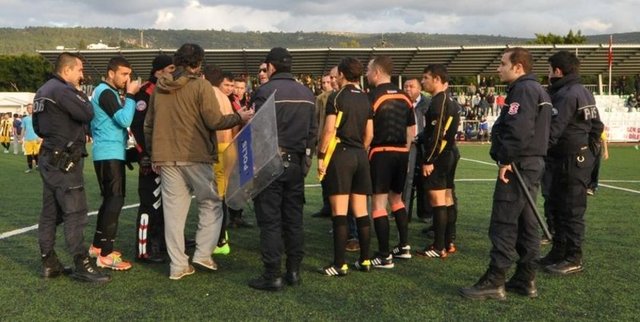 Polis ekipleri eşliğinde soyunma odasına geçen hakemlere taraftarlar da tepki gösterdi. İşler, soyunma odasına giden hakemleri korumaya çalıştı.