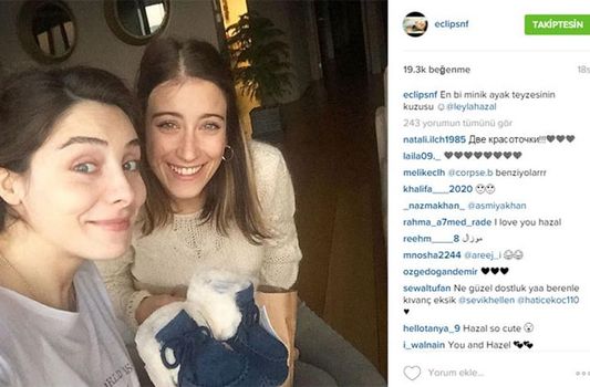 8 aylık hamile olan ve kız bebek dünyaya getirmeye hazırlanan Fettahoğlu'nu ziyaret eden Hazal Kaya hediye götürmeyi de ihmal etmedi. O anları Nur Fettahoğlu, En bi minik ayak teyzesinin kuzusu notuyla Instagram'dan paylaştı.