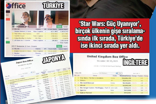 ‘Star Wars: Güç Uyanıyor’, birçok ülkenin gişe sıralamasında ilk sırada, Türkiye’de ise ikinci sırada yer aldı.