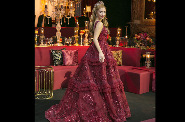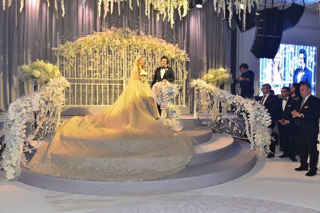 Sena Ağaoğlu, Zuhair Murad imzalı, 37 kilo ağırlığındaki 300 bin Euro’luk gelinliğiyle göz kamaştırdı.