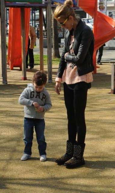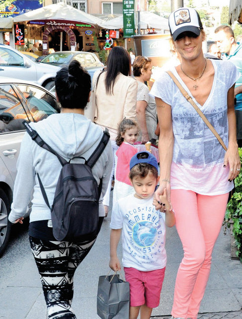 Çağla Şikel önceki gün oğulları Kuzey ve Uzay'la birlikte Bebek'teydi.