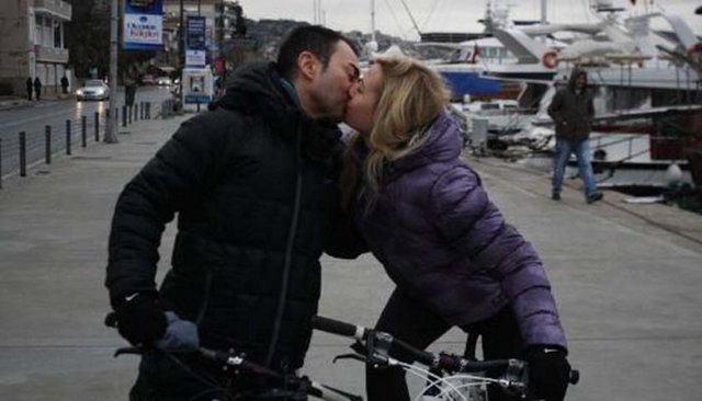Suyun içinde samimi görüntüler veren ikili, sık sık öpüştü.