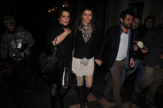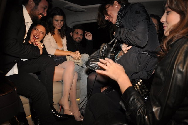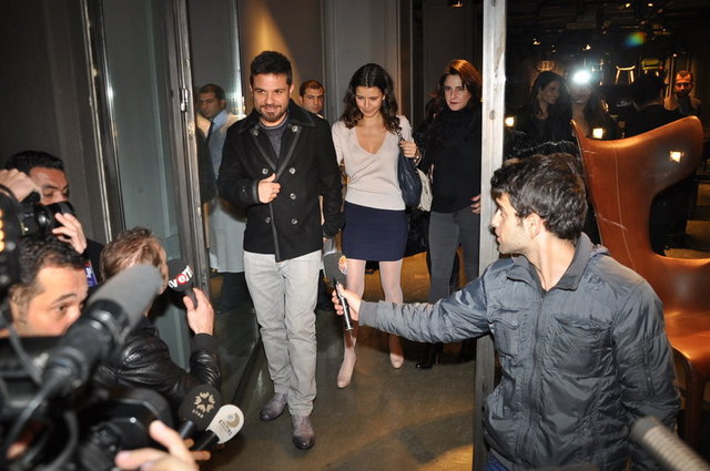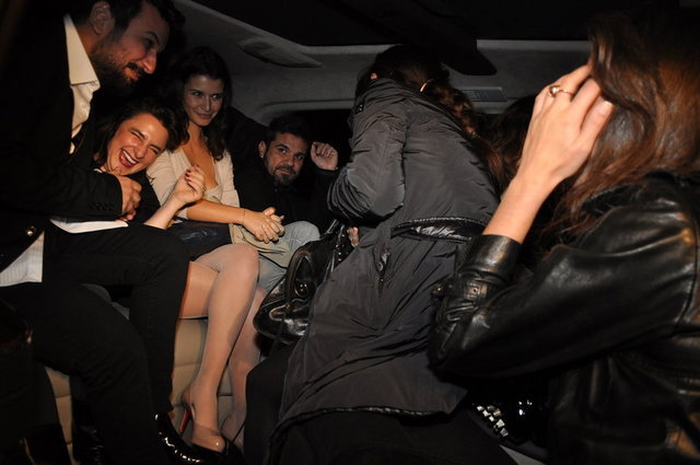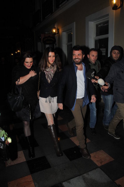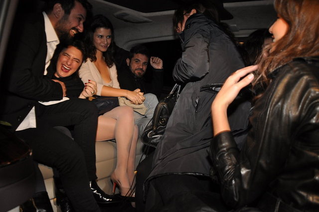 Flaşların patlamasıyla gülümseyen ikiliden Dermancıoğlu ise yine dekolte şov yaptı. Giydiği kıyafetlerle her zaman dikkat çeken oyuncu bu kez de patlayan flaşların azizliğine uğrayarak transparan bluzu yüzünden frikik verdi.