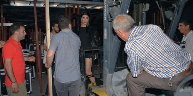 Yener sahneye forklift tipi vinçle çıktı.