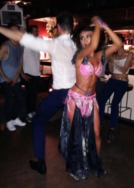 Ünlü oyuncu, oryantal dansçı Yıldız Hazel’le yaklaşık yarım saat boyunca karşılıklı göbek attı.