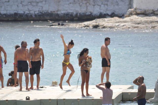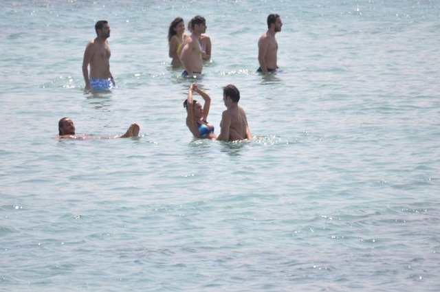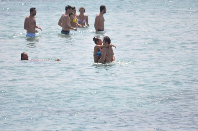 Daha sonra denize giren çift, romantik dakikalar yaşamaya burada da devam etti.