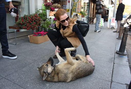 Begüm Kütük önceki gün Bebek’te köpek severken görüntülendi.