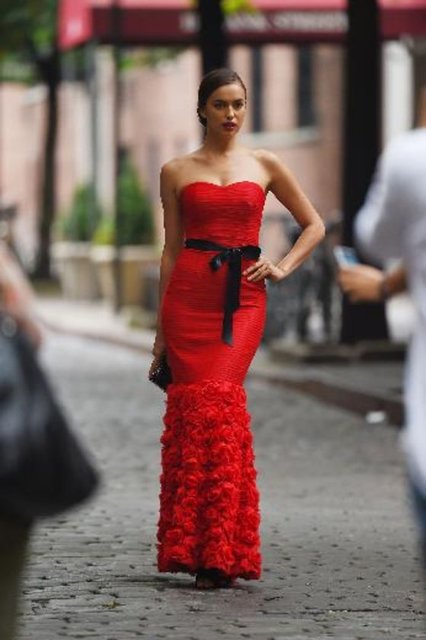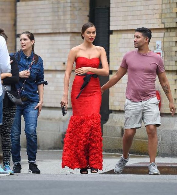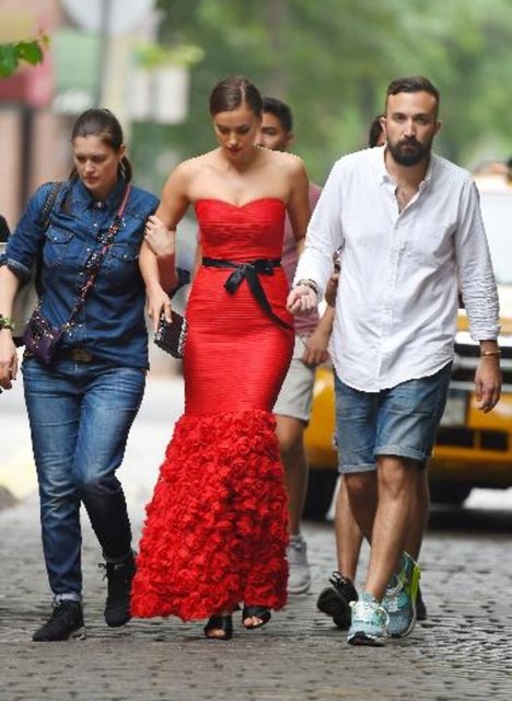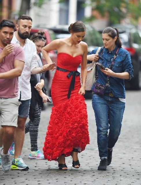 Hafta sonu Antalya'daki defilede eteği yırtılan Shayk bu kez New York'ta kırmızı elbisesiyle görüntülendi. Shayk'ın giydiği etekleri gül motifleriyle süslü kırmızı gece elbisesi bedenine bol gelince kamera arkası ekibi de ilginç bir yöntem buldu.