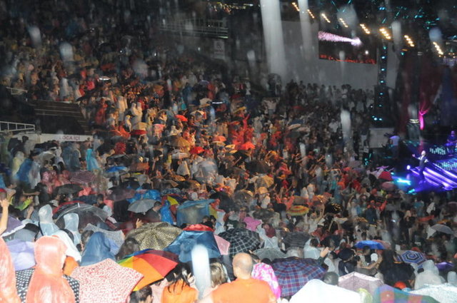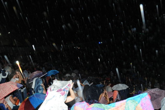 Konserin ortalarında - başlayan şiddetli yağmura - rağmen sahneden inmeyen Megastar, sevilen - şarkılarını Açıkhava Tiyatrosu'nu dolduran 6 bin - hayranıyla birlikte söyledi.