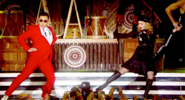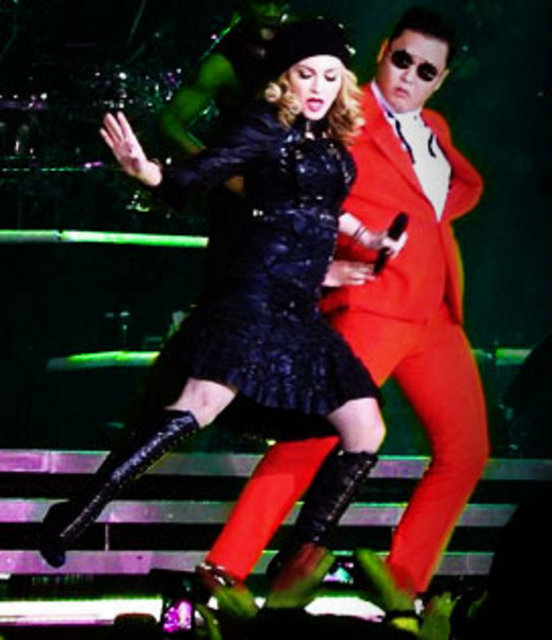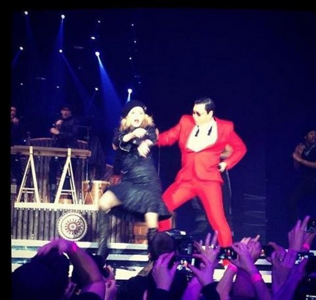 New York'ta Madison Square Garden'da bu hafta ikinci konserini veren Madonna, Psy ile “Gangnam Style” ve “Music” şarkılarında, 20 bin izleyicinin önünde dans etti.
