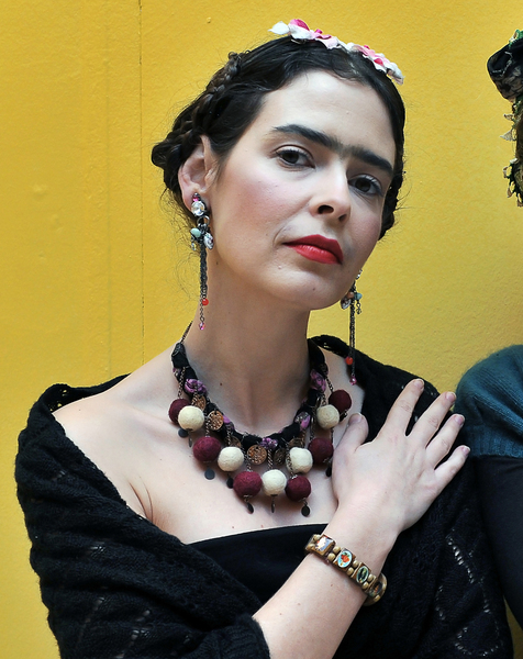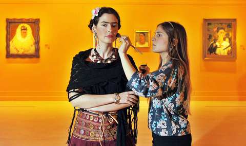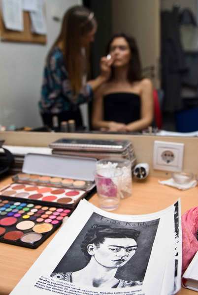 Biz de Frida'ya yakışır bir şey yaptık; Frida Kahlo ile efsanevi aşkı, büyük ressam Diego Rivera'yı ağırlayan Pera Müzesi'ni Frida kılığına giren Pelin Batu ile gezdik. Ama önce biraz hazırlık yaptık. Malzemelerimiz kaş boyası, kırmızı ruj, yoğun allık, takılar, tokalar, kırmızılar, sarılar, maviler... Gerisi makyöz Tamay Karaloğlu'nun becerisi.