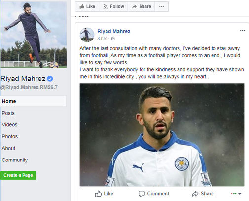 Premier Lig ekiplerinden Leicester City'nin yıldız futbolcusu Riyad Mahrez, sosyal medya hesabından futbolu bıraktığını açıkladı