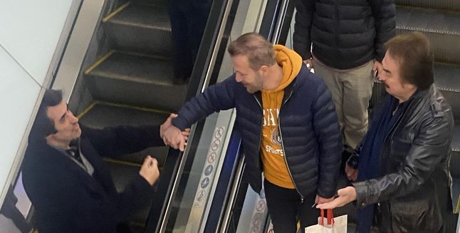 Daha sonra yürüyen merdivende Orhan Gencebay ile karşılaşan Kırmızıgül, selam vererek alışverişine devam etti.