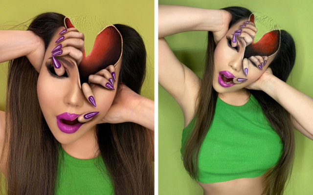 Makyaj yeteneğiyle optik illüzyon yarattı