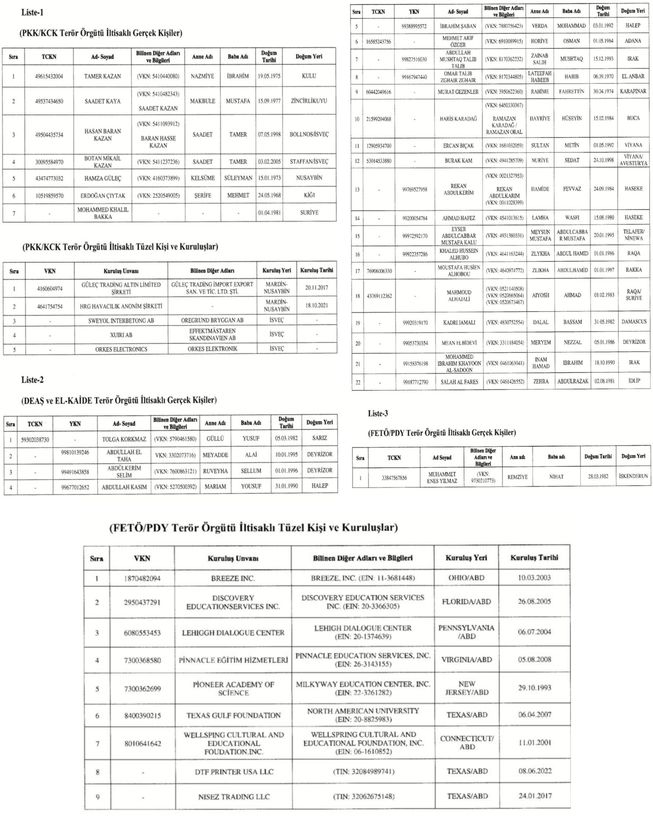 Resmi Gazete'de yayınlanan kararla, terör örgütleriyle bağlantılı 30 kişi ve 14 kuruluşun mal varlığını donduruldu