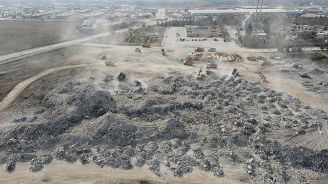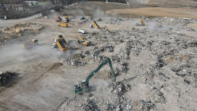 Malatya'da gece gündüz çalışan 900 araçla kaldırılan enkaz 830 dönümlük iki alanda toplanıyor