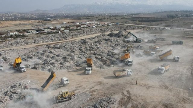 Kahramanmaraş merkezli 6 Şubat'taki depremlerin büyük yıkıma neden olduğu, her 4 binadan 1'inin yıkıldığı Malatya'da enkaz iki bölgedeki 830 dönüm alanda toplanıyor. Kentte ekskavatör, kepçe, dozer gibi iş makinelerinin yer aldığı yaklaşık 250 aracı gece gündüz çalışarak kaldırılan enkaz, günlük ortalama 650 kamyonla taşınıyor