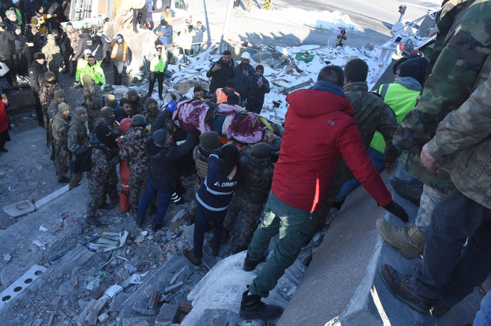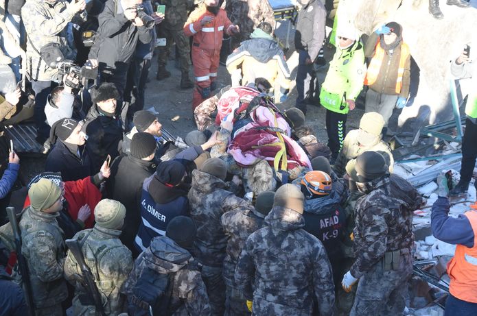 Malatya'da arama kurtarma çalışmasını sürdüren ekipler, eğitimli köpek 'Köpük''ün tepki vermesinin ardından 6 katlı bir binanın birinci katında olduğu belirlenen Meral Nakır'a (60), 20 saatlik bir çalışma ile ulaşarak depremden 77 saat sonra canlı kurtarmayı başardı.