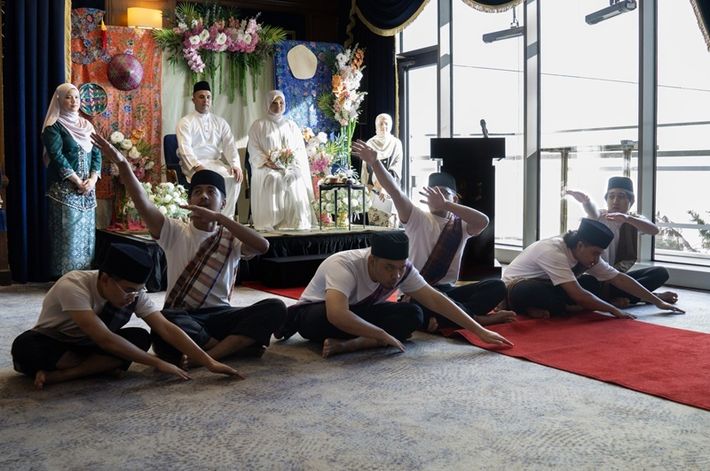 Malezya düğün geleneklerine göre gelin ve damat tahta oturduktan sonra yakın aile üyeleri, akrabalar ve önemli misafirler sırayla kürsüye çıkarak çifti tebrik eder ve kutsarlar.