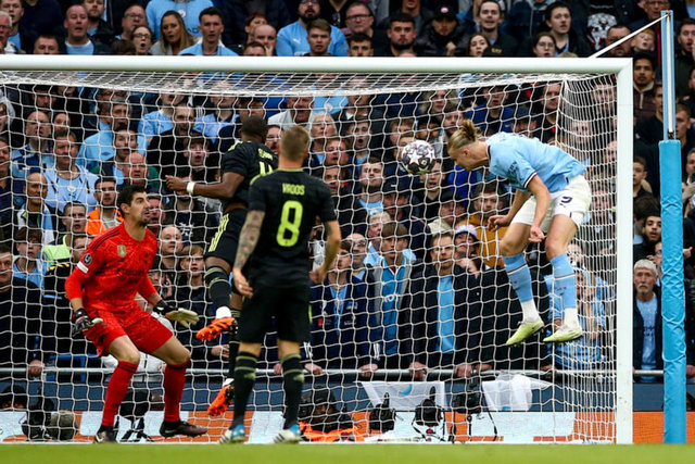 Kontrataklarla etkili olan City ekibinde İlkay Gündoğan'ın topuk pasıyla ceza sahası içinde kaleciyle karşı karşıya kalan Haaland'ın 73. dakikadaki yerden vuruşunda, kaleci Thibaut Courtois'dan dönen meşin yuvarlak, üst direğe çarparak kornere çıktı.