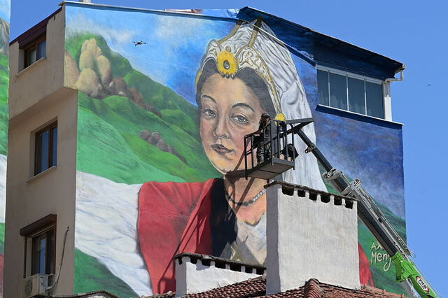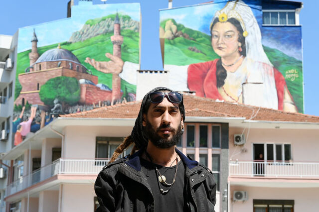 Duvar resimleri yapan mural sanatçısı Axel Mengü, UNESCO'nun Somut Olmayan Kültürel Mirası Listesi'nde yer alan festival kapsamında Mimar Sinan Mahallesi'ndeki Sultan Camisi'nin karşısındaki iki binanın dış cephesini renklendirdi.