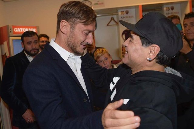 Roma'nın efsane oyuncularından Francesco Totti de Twitter hesabından Maradona ile fotoğrafını paylaşarak, "Sen futbolun tarihini yazdın. Hoşça kal" ifadelerini kullandı.