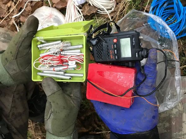 AA'nın haberine göre, Mardin İl Jandarma Komutanlığı ekipleri Nusaybin ilçesinin Çalıköyü Mahallesi kırsalında arazide arama yaptı. Aramalarda, kayanın altına tuzaklanan, 5 kilogram amonyum nitrat ve mazot karışımı ile hazırlanan basma düzenekli el yapımı patlayıcı, doğal bir mağara içine gizlenmiş şeffaf bidonlarda telsiz, radyofrekans komutalı ateşleme anahtarı, 30 elektronik direnç, 17 elektrikli fünye, 25 metre infilaklı fitil, 100 metre elektrik kablosu, piknik tüpü içine yerleştirilmiş yaklaşık 10 kilogram ağırlığında patlatılmaya hazır el yapımı patlayıcı düzeneği, ayrıca taşlar arasına saklanmış bidon içerisinde örgütsel doküman ve sığınak yapımında kullanılan inşaat malzemesi ele geçirildi.