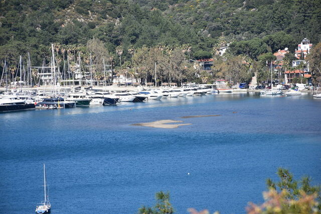 Muğla'nın Marmaris ilçesinde deniz suyu kıyıdan yaklaşık 5 metre çekildi.