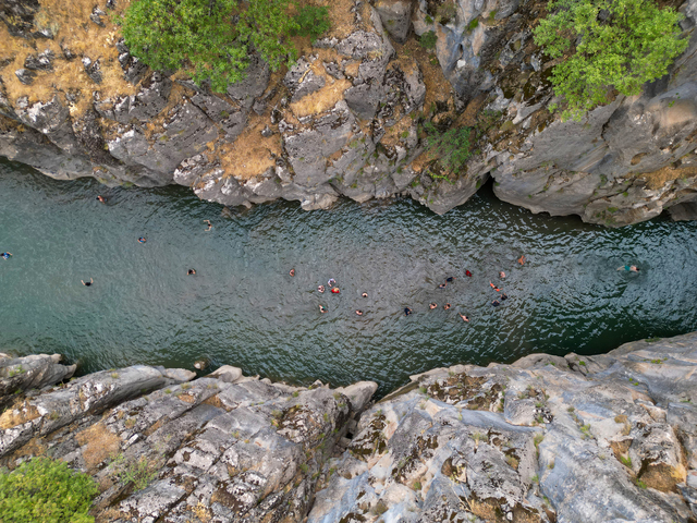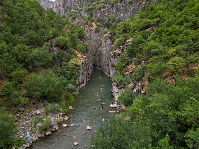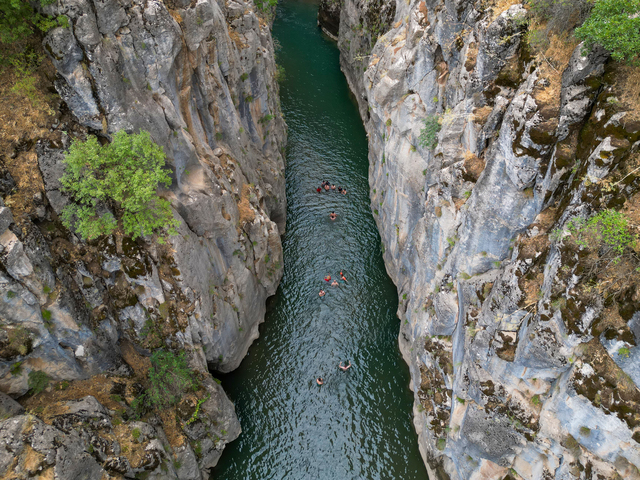 Kato Dağı'nın eteklerinde, sarp kayalıklarla çevrili kanyona gelen doğaseverler, hem doğayla iç içe zaman geçiriyor hem de dik kayalar arasındaki kanyonda kendilerini berrak sulara bırakarak serinleme fırsatı buluyor.