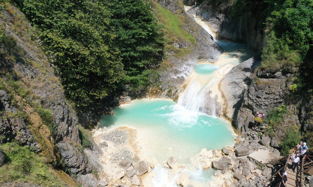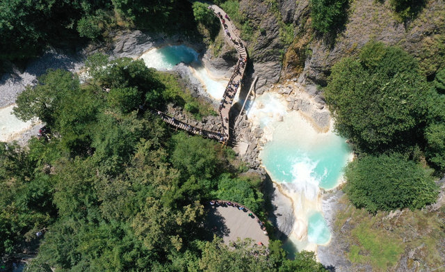 Buradaki güzelliğin kendisini etkilediğini belirten Engin, "Gerçekten geldiğimize değdi, turkuaz rengiyle çok güzel ve serin bir yer" dedi.