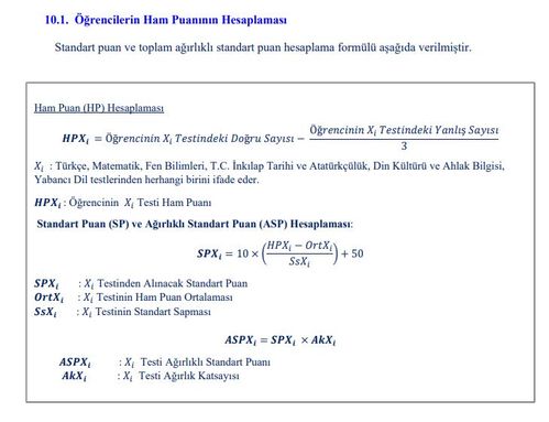 Merkezî Sınava katılacak olan öğrencilerin puanı, aşağıdaki işlem basamaklarına göre tek puan türünde hesaplanacaktır.