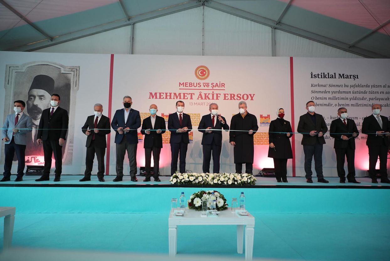 Serginin açılış konuşmasını yapan Zeytinburnu Belediye Başkanı Ömer Arısoy, İstiklâl Marşı'nı yazan Mehmet Âkif'in özellikle mebus kimliği ile yeterince tanınmadığına değinerek, "İstiklâl Marşı, büyük şair ve dava adamı Mehmet Âkif Ersoy'un, Anadolu'nun dört bir yanında devam eden Milli Mücadele'nin ruhunu ve kararlılığını yansıtan ve aynı zamanda o büyük mücadeleye coşku ve heyecan kazandıran abidevi bir eser. Bir direnişin destanı. İstiklâl Harbimizin manifestosu. Mehmet Âkif merhumun hasta yatağında söylediği gibi, Allah bu millete bir daha İstiklâl Marşı yazdırmasın. Bu vesileyle milli şairimizi, bütün şehitlerimizi ve gazilerimizi rahmetle minnetle anıyoruz." dedi.