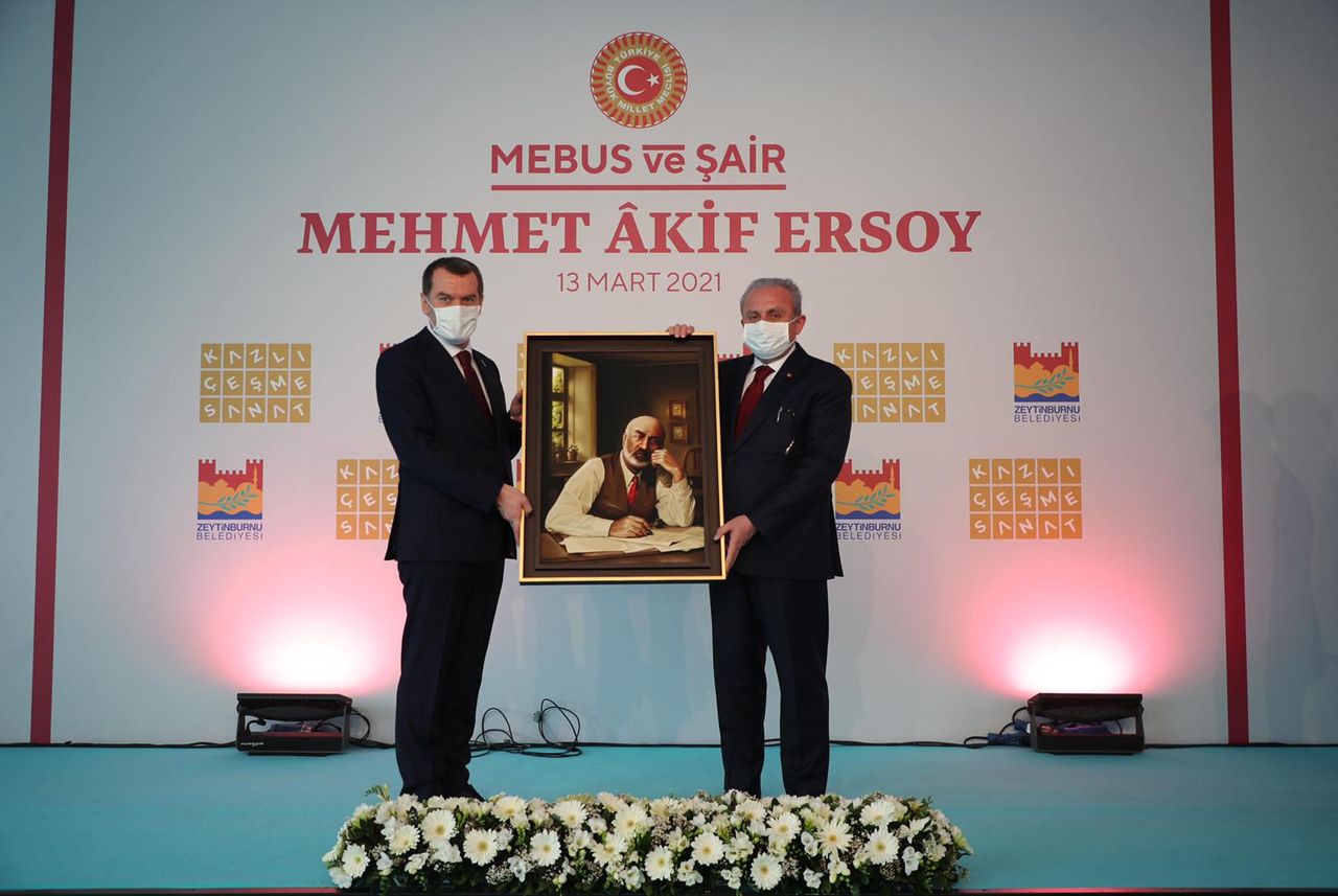 Programın ardından Doç.Dr. Murat Kara tarafından resmedilen Mehmet Âkif Portresi, Zeytinbunurnu Belediye Başkanı Ömer Arısoy tarafından TBMM Başkanı Prof.Dr. Mustafa Şentop'a takdim edildi.