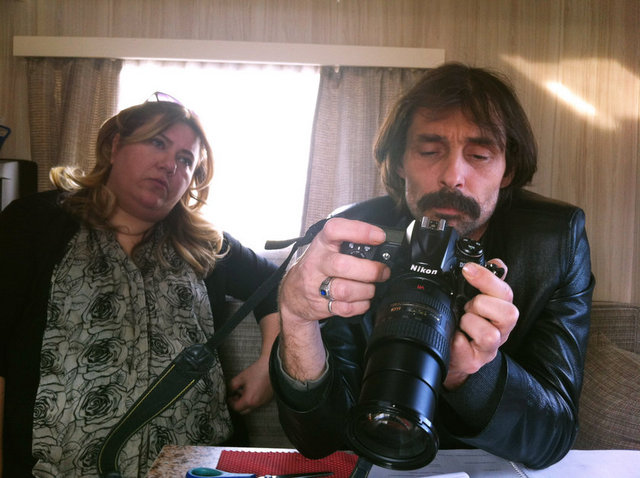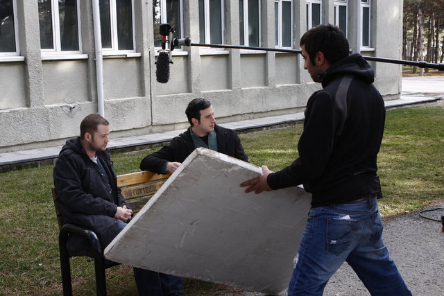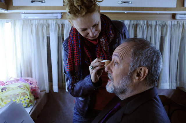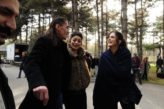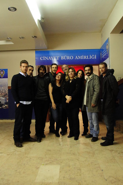 ŞUBAT 2013. Adam Film Kurumsal İletişim Direktörü Velhan Çantay’la Cinayet Büro çekimlerinin yapıldığı Ankara Çubuk’tayız. Ağaçlar arasında bir binaya yaklaşıyoruz. O sırada bahçede bir kutlama var. Meğer Harun karakterine hayat veren Fatih Artman’ın doğum günü kutlanıyormuş. Fotoğraf makinemı kaptığım gibi arabadan atladım ve fotoğraf çekmeye başladım. Ama görseniz savaş çıkmış ve ben ödüllük fotoğraf peşindeymiş gibiyim. Herkes hem şaşkınlıkla bana bakıyor hem de gülüyor. İnanılmaz sıcak bir şekilde karşılanıyorum. Ardından herkes karavanına geçiyor. Sette üç karavan var. Biri makyaj karavanı, biri cinayet büro elemanlarına, diğeri de Erdal Beşikçioğlu’na ait...