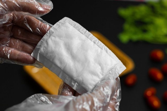 Et paketlemede kullanılan emici pedlerin çoğu iki malzemeden birinden yapılır. İlki, hemen hemen tüm ürün ambalajlarında bulduğunuz aynı küçük boncuklar olan silika jeldir ve tipik olarak üzerinde kalın bir şekilde "YEMEYİN" yazan bir pakete sarılır. Silika (silikon dioksit olarak da bilinir), kuvars kristallerinin yapıldığı aynı malzemedir ve son derece gözeneklidir. Silika jel nemi emebilir ve bu yüzden onu her türlü üründe bulabilirsiniz. Sıvıyı emdiği için ürün ambalajındaki nemi de düşük tutarak bozulmayı ve nemin zarar görmesini engeller.