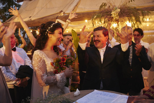 Gelin Ada Sanlıman'ın da konukları için şarkılarını seslendirdiği düğünde, Sanlıman ve Birce Akalay'ın birlikte "Dance Me to the End of Love" adlı Leonard Cohen şarkısını söylemesi düğünün samimi ortamını doruk noktasına çıkardı.