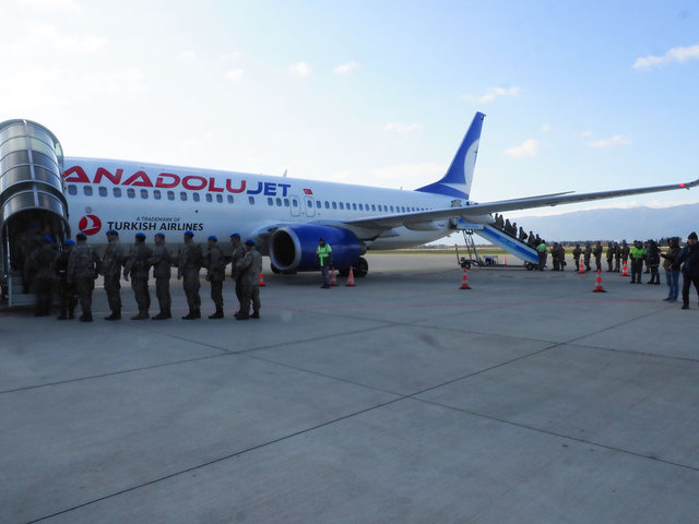 Edremit ilçesinde konuşlu 19. Komando Tugayı Komutanlığı'na bağlı komandolar, Balıkesir Koca Seyit Havalimanı'ndan Türk Hava Yollarına ait "İskenderun" adlı uçak ile saat 17.00'de deprem bölgesine hareket etti.