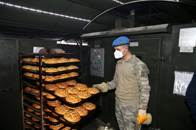 Depremlerin merkez üssü Kahramanmaraş başta olmak üzere afet bölgelerinde birçok yardım faaliyetinde bulunan Mehmetçik, depremzedeler için ekmek üretimi de yapıyor.