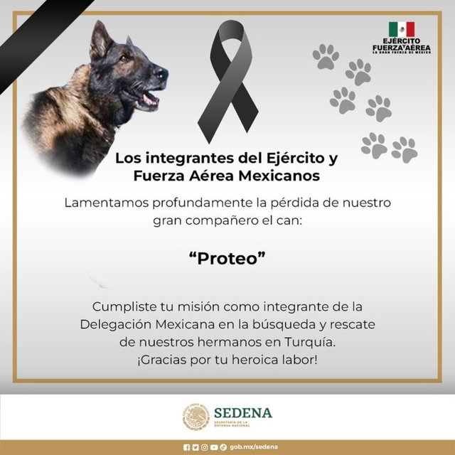 Proteo'nun görevi boyunca arama kurtarma çalışmalarında birçok insanı kurtardığını belirten Marquez, "Misyonunu tamamlamış oldu. Buraya gelirken onu tecrübesini aktarmak üzere getirmiştik. Buradaki birçok enkazdan canlı çıkarmaya yardımcı oldu. Birçok yer tespiti yaptı. O konuda Proteo değerli köpek bizim için, daha çok can dostumuz. Öncelikle can dostumu kaybettim. Çok üzgünüm, gözlerim doluyor. Birçok operasyona beraber katıldık. Her zaman sahaya çıktığımızda birbirimize destek oluyorduk." diye konuştu.