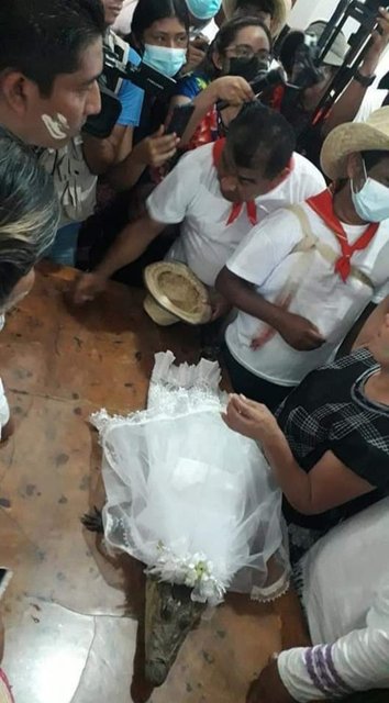 Meksika'nın Oaxaca eyaletinde yer alan San Pedro Huamelula kasabasının Belediye Başkanı Victor Hugo Sosa Garcia bir timsahla evlendi