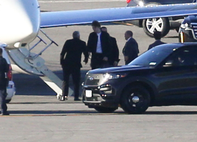 Melania ve Barron Trump'ı çok sayıda araç havaalanına kadar takip etti. Anne oğulu seyahat boyunca Gizli Servis elemanları korudu.