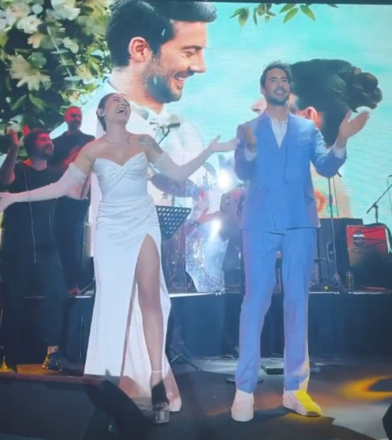 Melek Mosso, nikâh töreninin ardından gelinliğiyle sahneye çıkarak, geliri evlilik hazırlığı yapan depremzedelere aktarılmak üzere bir konser verdi.