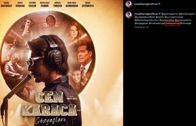 İsmail Hacıoğlu, sosyal medya hesabında filmin afişine Melisa Aslı Pamuk'u etiketlemek istedi ancak engellenince bunu yapamadı.