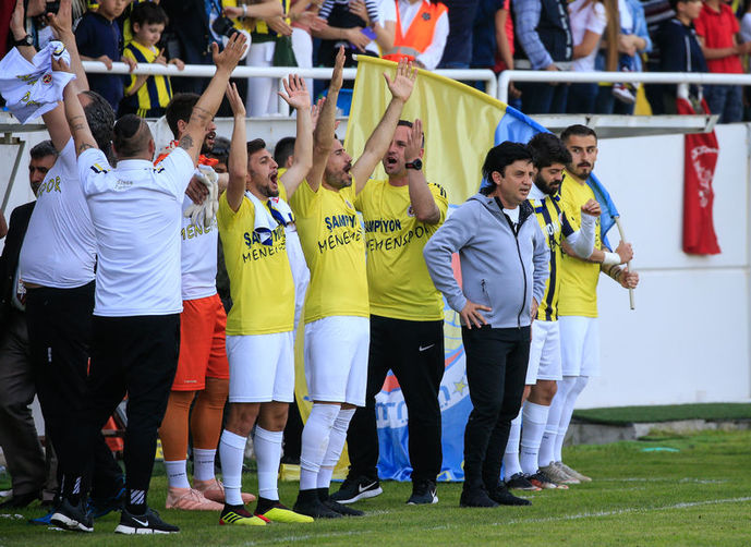 Gelecek yıl ilk defa Spor Toto 1. Lig'de mücadele edecek Menemen Belediyesporlu futbolcular maçtan sonra davullu zurnalı büyük coşku yaşadı. Üzerlerinde "Şampiyon Menemen Belediyespor" yazılı tişörtler giyen futbolcular coşkularını maç boyunca tezahüratlarla takımlarına destek veren taraftarlarıyla paylaştı. Futbolcular havaya tuz serpti.
