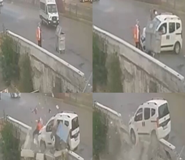 Görüntülerde, hafif ticari aracın önce sollamak istediği minibüse ardından da yolda yürüyen genç kıza çarparak köprüden aşağı düşürdüğü anlar yer aldı.