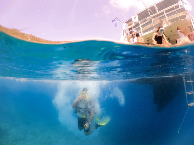 Hazırlıkların ardından suya dalan katılımcılar, Akdeniz'in altındaki yaşamı gözlemleme şansı buluyor, doğal resifleri ve deniz canlılarını inceliyor.